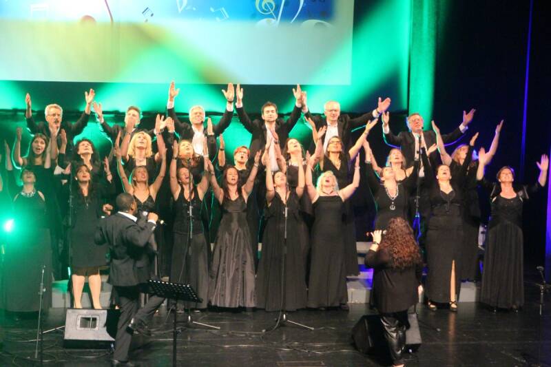 Begleitet wurden wir von unserer professionellen Band, bestehend aus Keyboards, Drums, Bass, Percussion, Querflöte, Geige und Gitarren. Verschiedenste Solisten unseres Chores kamen bei diesem Konzert zum Einsatz und brachten „Farbe ins Spiel“.