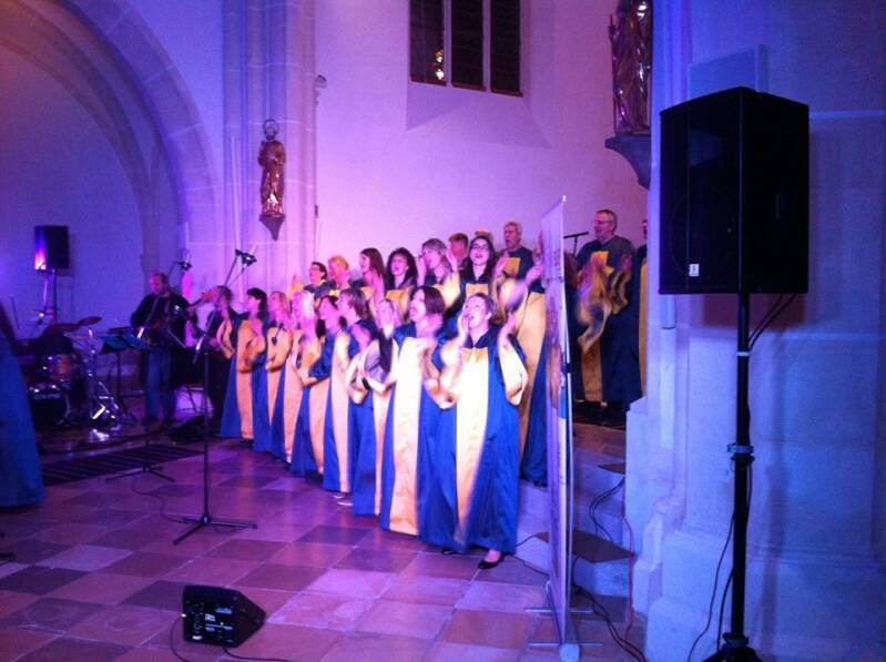 Einerseits war es –da waren wir uns alle einig- die kälteste Kirche, in der wir bisher ein Konzert gegeben haben, aber andererseits waren wir überwältigt von der Sympathie und Begeisterung, die uns von den Deggendorfern entgegenströmte. Etwa 600 Gospelinteressierte / Gospelbegeisterte ließen sich (obwohl viele von ihnen stehen mussten) von unserer besonderen Adventsstimmung „anstecken“.